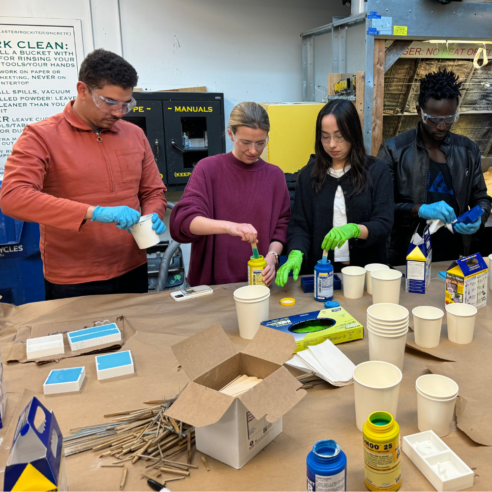Learning the molding and casting process was a collaborative experience facilitated through the Arch team workshop. Initially, the team focused on preparing silicone molds using OOMOO rubber, guided by step-by-step instructions to ensure proper mixing, pouring, and curing. Working together allowed us to streamline the preparation, with each person assigned specific tasks to expedite the process. Later, a smaller sub-group within the workshop, led by Jacob, taught the technique of special casting with tin alloy. Handling molten metal required precision and safety, making teamwork essential. Having more than one person allowed tasks to be divided, such as pouring the molten metal while simultaneously shaking the mold to avoid air bubbles. This not only sped up the process but also ensured safety measures were upheld, reducing risks. The hands-on approach, combined with group coordination, made the entire learning process efficient, informative, and safe.